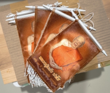 วัดใจ...เปิด100....ผ้ายันต์แขวนรถ หลวงปู่แผ้ว ปวโร วัดรางหมัน 5ผืน |