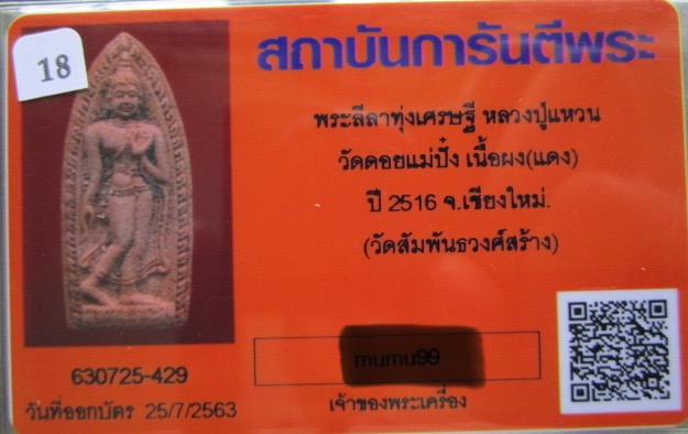@เคาะเดียวพระลีลาทุ่งเศรษฐี หลวงปู่แหวน วัดดอยแม่ปั้ง เนื้อผง(แดง) ปี 2516 จ.เชียงใหม่ (วัดสัมพันธวงศ์สร้าง) |