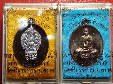 เหรียญหลวงปู่บัว รุ่นมงคลมหาลาภ เหรียญนั่่งโต๊ะเต็มองค์เนื้อทองแดง + เหรียญพระนากปรกเนื้อนวะหน้ากากเงิน รวม 2 เหรียญ ปี 2559 ราคาวัดใจ