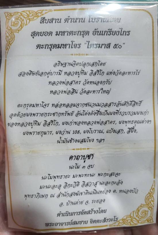 ตะกรุดมหาโจร ไตรมาส 50 หลวงพ่อสาคร วัดหนองกรับ