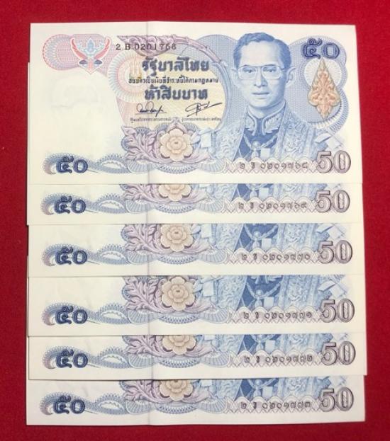ร.9 ธนบัตร 50บาท เลขเรียง 6ฉบับ ไม่ผ่านใช้ กริ๊บๆ |