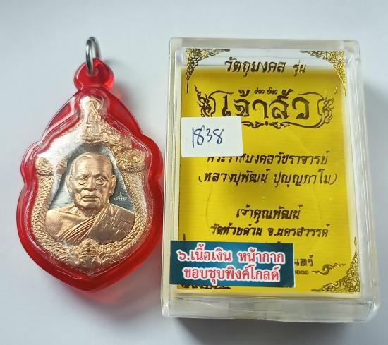 เหรียญ "เจ้าสัว" หลวงพ่อพัฒน์ วัดห้วยด้วน (จัดสร้างโดย บอย ท่าพระจันทร์) เนื้อเงิน หน้ากาก/ขอบชุบพิ้งค์โกลด์ เบอร์ 1838 พร้อมเลี่ยม และกล่องเดิมครับ (น้ำหนักรวมเลี่ยม 24.26 กรัม)