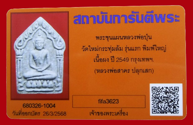 แดงที่เคาะแรก ... พระขุนแผนพรายกุมาร พิมพ์ใหญ่ พระอาจารย์ปุ่น วัดใหม่กระทุ่มล้ม (รุ่นแรก ปี49) หลวงพ่อสาคร วัดหนองกรับ ปลุกเสก + บัตรพระแท้