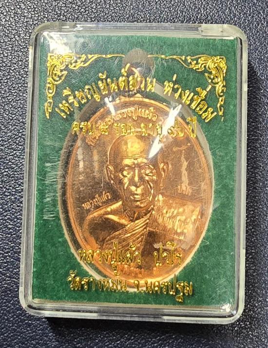 เหรียญยันต์สวนห่วงเชื่อม ครบ 8 รอบ 96 ปี หลวงปู่แผ้ว ปวโร วัดรางหมัน ปี 2562 เนื้อทองแดง พร้อมกล่องเดิม สวย วิ้งๆครับ |