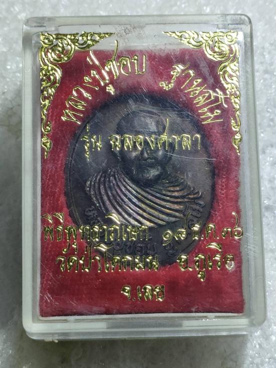 "เคาะเดียว150"เหรียญหลัง ร.5 ปี2536 พิธีกริ่งฐานสโม หลวงปู่ชอบ ฐานสโม วัดท่าแขก จ.เลย ตอกโค๊ต ตอกหมายเลข ๒๐๓๗ กล่องเดิม |