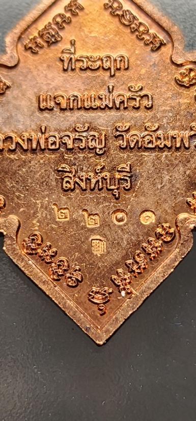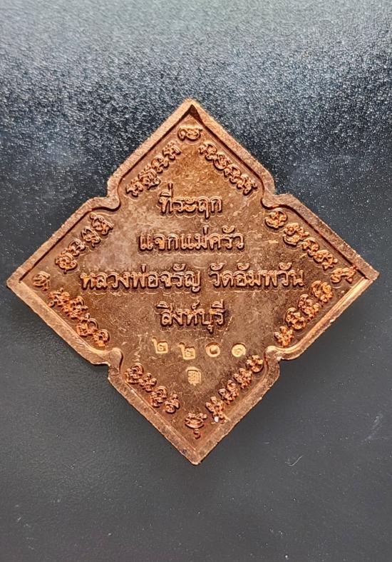 จัดสร้างโดย คุณสมประสงค์ (ขุนทอง ในธรรมนิยายและเป็นหลานแท้ๆของหลวงพ่อจรัญ) ท่านเป็นหัวหน้าแม่ครัว วัดอัมพวัน สร้างขึ้นในปี 2555 รุ่นนี้จึงชื่อว่ารุ่น แจกแม่ครัว หลวงพ่อจรัญ วัดอัมพวัน อธิษฐานจิตให้