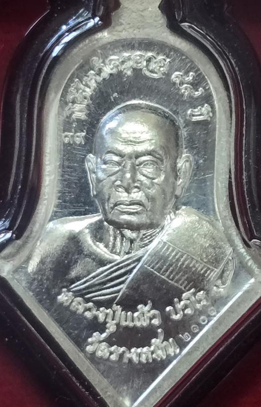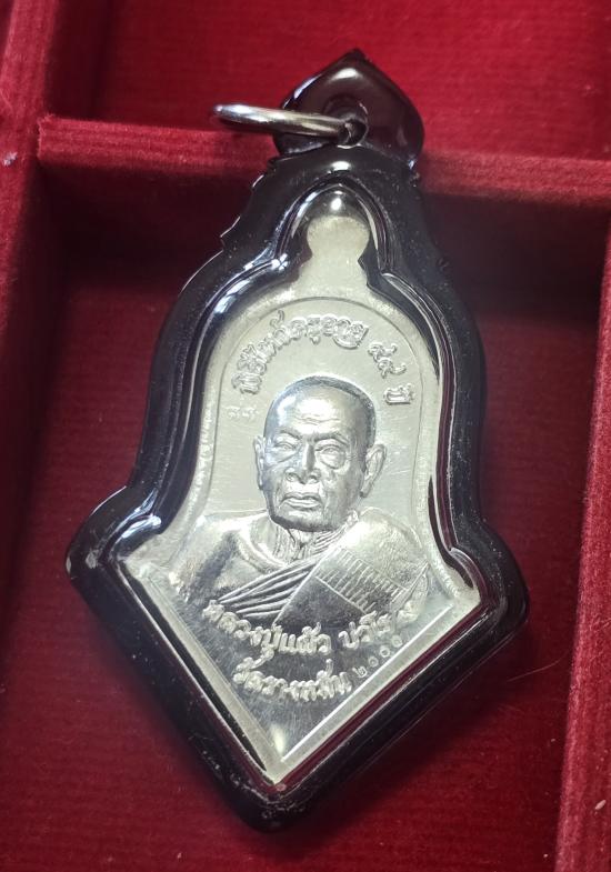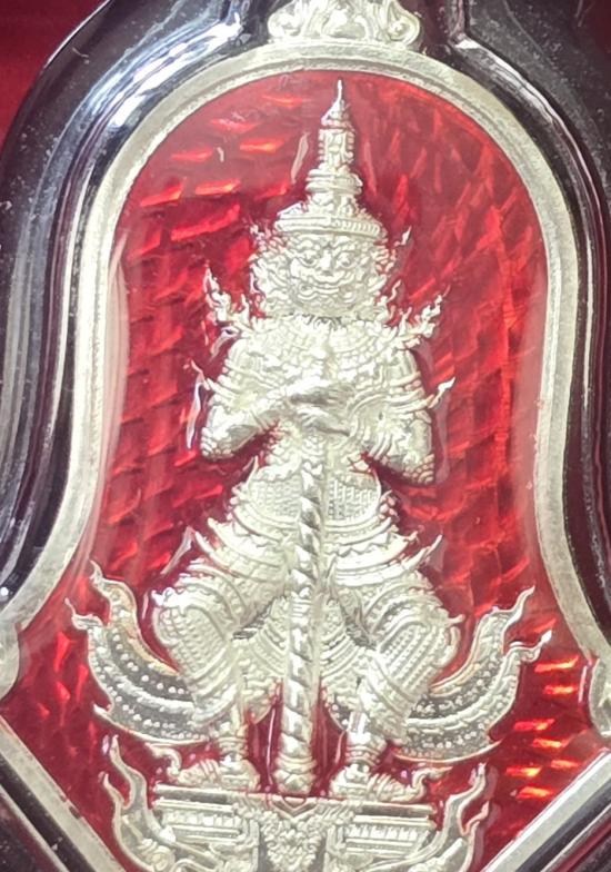 เหรียญท้าวเวสสุวรรณ งานไหว้ครู ๙๙ ปี หลวงปู่แผ้ว ปวโร วัดรางหมัน เนื้อเงินลงยาแดง