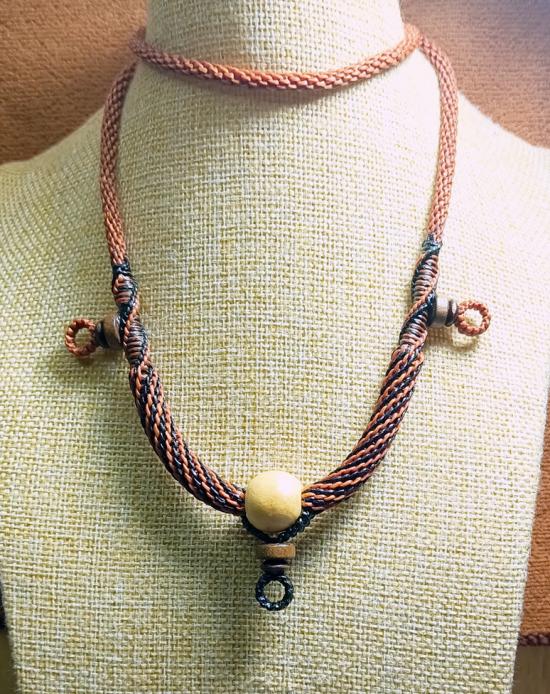 สร้อยคอเชือกเทียน งานถักมือ ( สีน้ำตาล-แซมดำ + แซมลูกปัดไม้ธรรมชาติ ห้อยพระ 3 องค์ ) ยาว24นิ้ว ครับ |