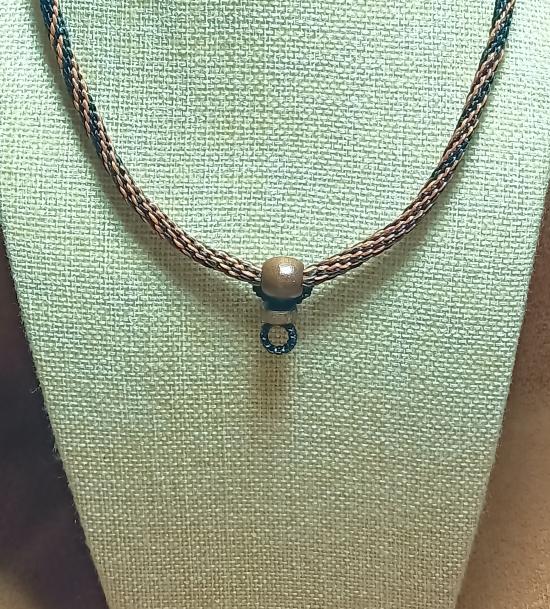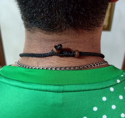สร้อยคอเชือกเทียน(แบบพอดีคอ-ถอดด้านหลัง ) ( สีดำ+น้ำตาลเข้ม แซมลูกปัดไม้ธรรมชาติ ห้อยพระ 1 องค์ ) |
