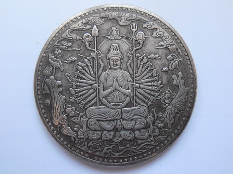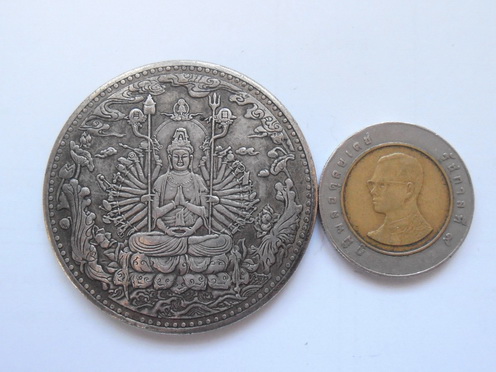 เหรียญเจ้าแม่กวนอิมพันมือ เนื้อเงินยวง มาจากประเทศจีน เหรียญขนาดใหญ่ |
