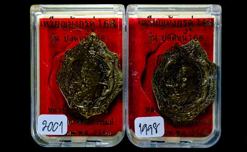 *ทีเดียว 2 องค์ ทองทิพย์รมซาติน เข้มขลังมาก เหรียญมังกรคู่168 รุ่นปลดหนี้168 หลวงปู่หมุน ฐิตสีโล ออกวัดบ้านจาน ปี66 เคาะเดียวแดง* |
