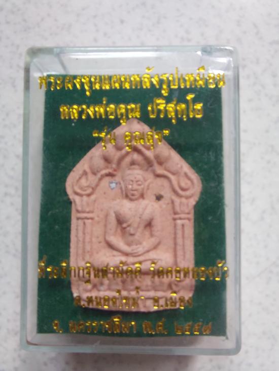 พระขุนแผนหลังรูปเหมือนหลวงพ่อคูณ รุ่นคูณสุข เนื้อผงออกสีชมพูอ่อน พร้อมกล่อง เดิมๆเลยครับ ออกให้บูชาที่วัดคอหนองบัว |