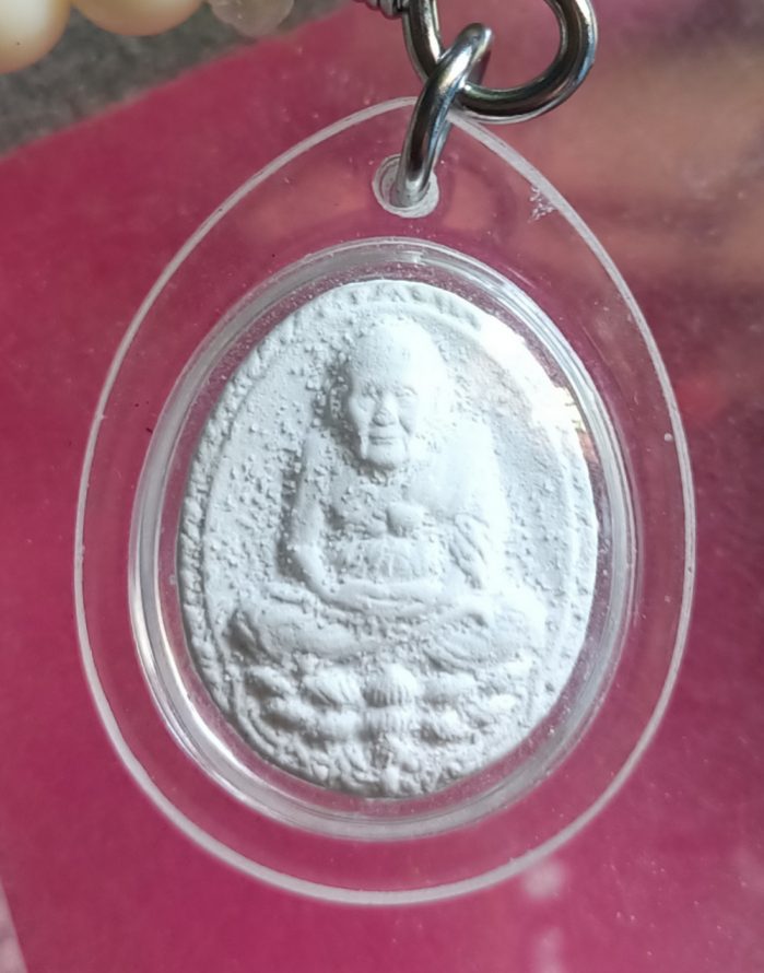 พระผงจักรพรรดิ์หลวงตาม้า วัดถ้ำเมืองนะ จ.เชียงใหม่ พิมพ์หลวงปู่ทวดเปิดโลก พร้อมประคำขาว |
