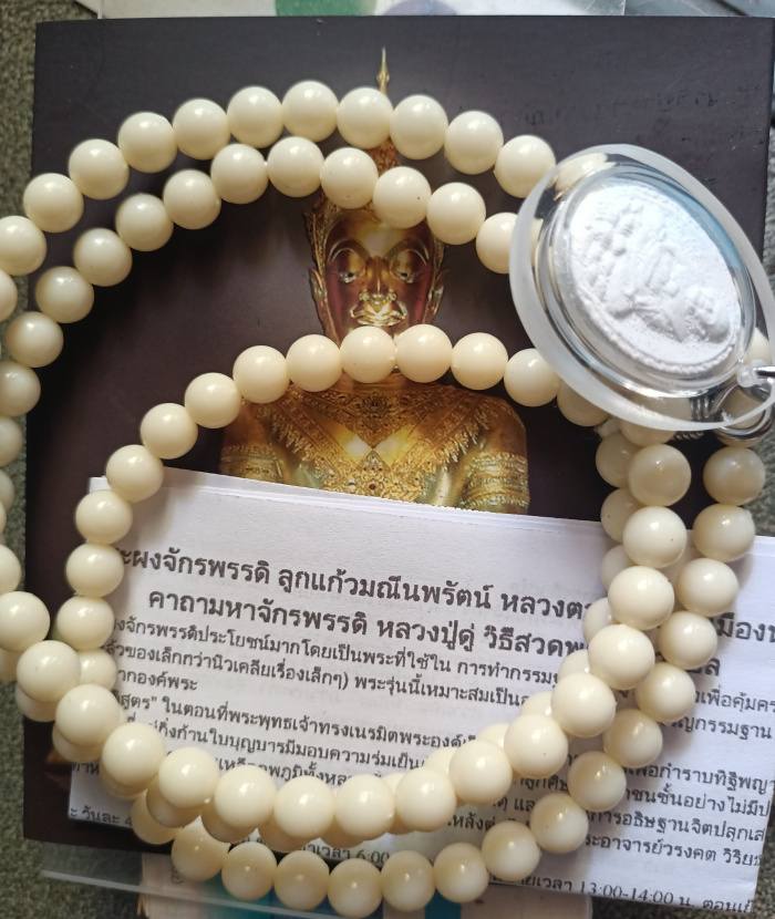 พระผงจักรพรรดิ์หลวงตาม้า วัดถ้ำเมืองนะ จ.เชียงใหม่ พิมพ์หลวงปู่ทวดเปิดโลก พร้อมประคำขาว แผ่นพับคาถาจักรพรรดิ |