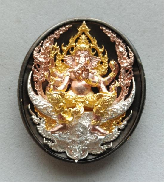 วัดใจเคาะเดียวแดงจ้า เหรียญพุทธศิลป์พระพิฆเนศ หลวงปู่จื่อ หลวงปู่ศิลาเสก เนื้อบรอนซ์ชุบ3Kแบล็คโรเดี่ยมลายทอง เคาะเดียวแดงจ้า |