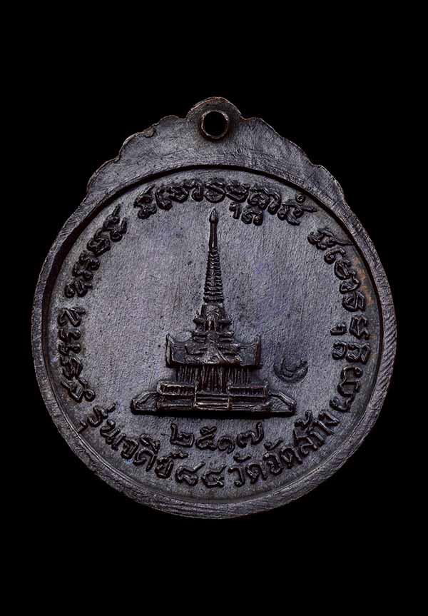 เหรียญกลม สร้างเจดีย์ 84 หลวงปู่แหวน เนื้อทองแดง วัดดอยแม่ปั๋ง ปี2517