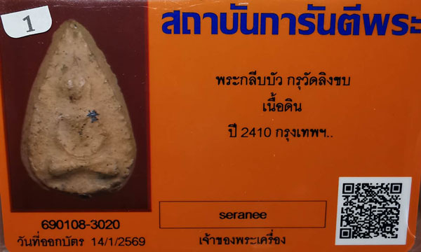พระกลีบบัว กรุวัดลิงขบ เนื้อดิน ปี2410 จ.กรุงเทพฯ + บัตรG-pra สภาพเดิมค่ะ