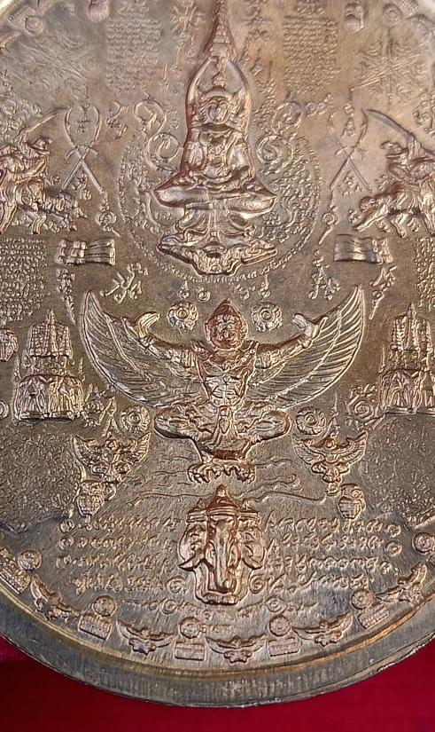 หรียญนั่ง พระเจ้าตากสินมหาราช ทรงครุฑ ปราบอริราชศัตรูพ่าย ด้านหลังนารายณ์ทรงครุฑ ขนาด 4.5 x 3.5 ซม. เนื้อทองแดงขัดเงา อาจารย์ศุภณัฐ ชัยชนิตย์หรืออาจารย์หม่อมเป็นประธานในการจัดสร้าง ณ ศาลสมเด็จพระเจ้านเรศวรมหาราช จ.พระนครศรีอยุธยา |