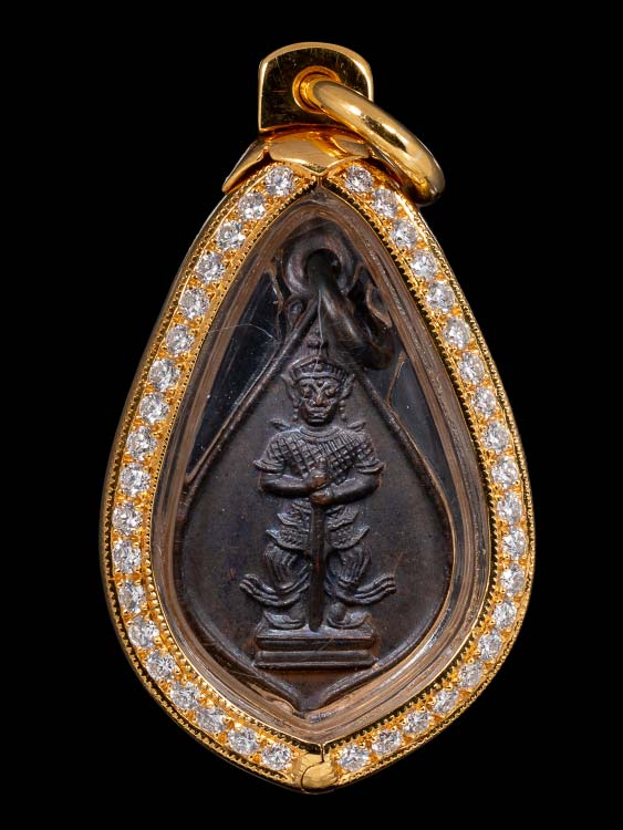 ชื่อพระเครื่อง เหรียญท้าวเวสสุวรรณ หลวงพ่อคง วัดวังสรรพรส เลี่ยมทองฝังเพชรแท้ เนื้อทองแดง ปี 2521