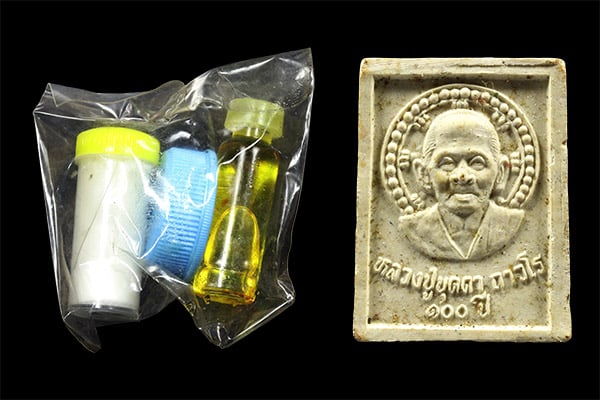 ..100../ พระผงหลวงปู่บุดดาวัดกลางชูศรีเจริญสุข พร้อมแป้งเสก สีผึ้ง น้ำมันจันทร์ครบชุด