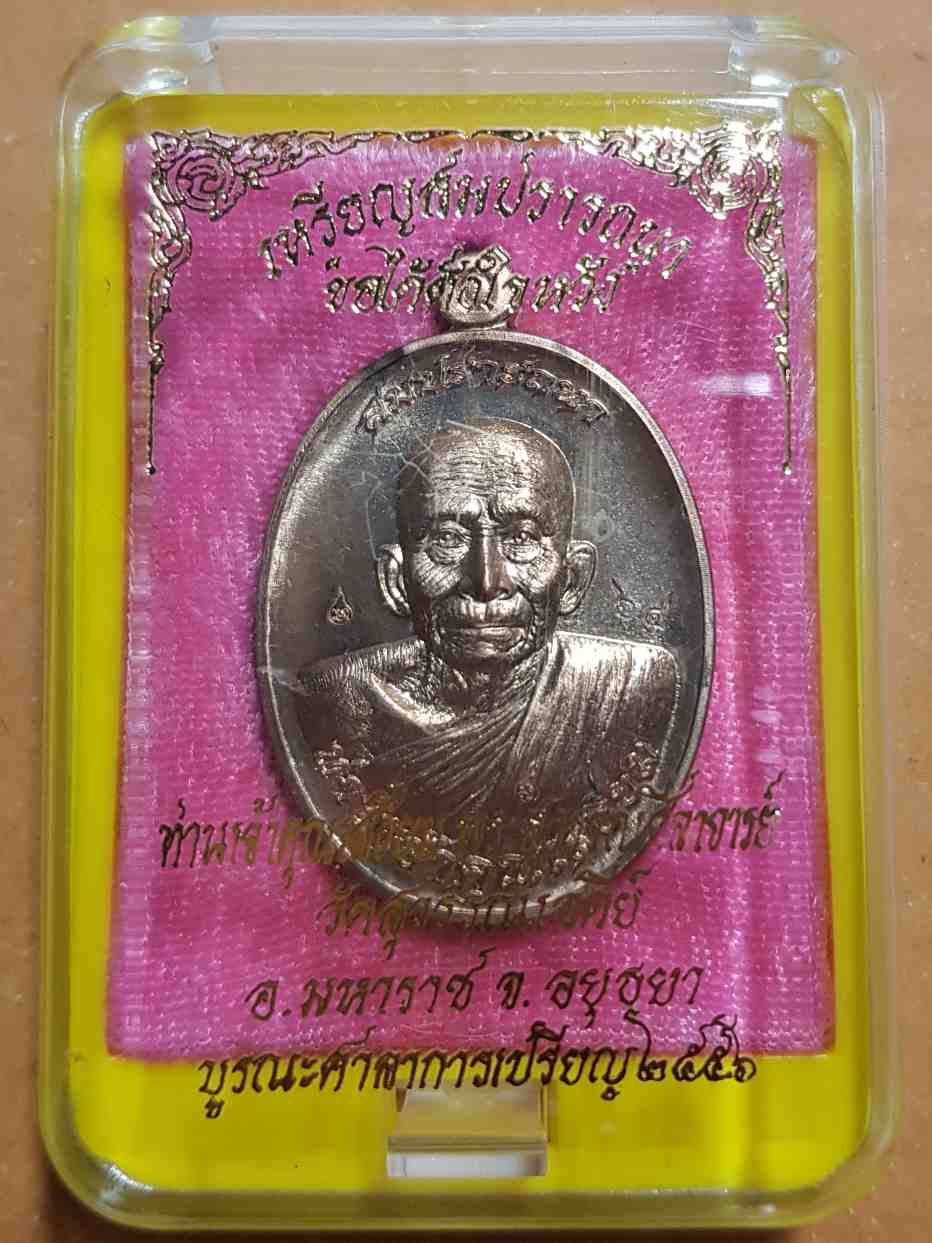 "วัดใจ" เหรียญสมปรารถนา ท่านเจ้าคุณเสงี่ยม วัดสุวรรณเจดีย์ จ.อยุธยา พ.ศ.2556 เนื้อนวะโลหะ หลังแบบ ตอกโค้ด หมายเลข 64 สภาพสวยพร้อมกล่องเดิม