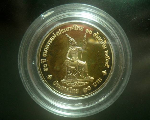 เหรียญกษาปณ์สมัยรัชกาลที่9 (ร.9) ที่ระลึกเนื่องในโอกาสครบ 50 ปี ธนาคารแห่งประเทศไทย 10 บาท ขัดเงา สภาพไม่ผ่านใช้สวยๆ |