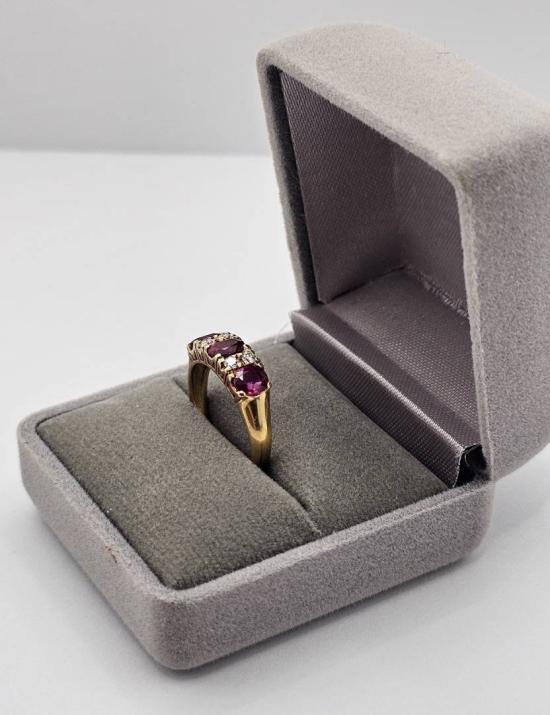 แหวนทับทิม 3 เม็ด ฝังเพชร 4 เม็ด