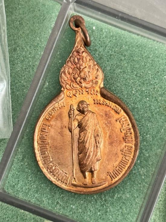 หลวงปู่แหวน เหรียญยืนหลัง ภปร ปี 2519 บร๊อคนิยม ทองแดงผิวไฟ