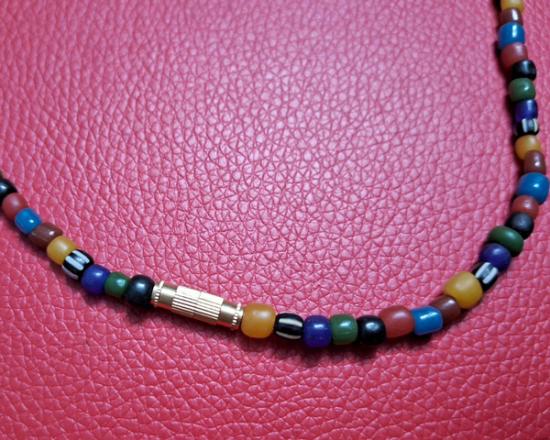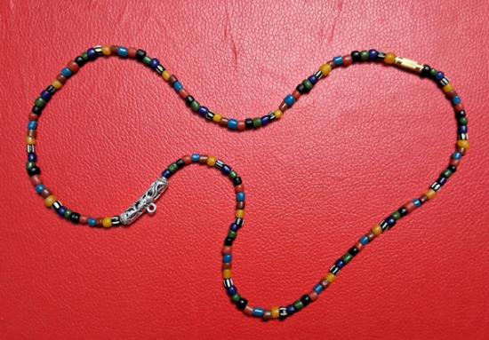 สร้อยคอลูกปัดทราวดี ลูกปัดโบราณสวยๆ ความยาว 24 นิ้ว สวมหัวได้หรือหมุนเกลียวทองเหลืองถอดออกก็ได้ สามารถห้อยพระได้ 1 องค์ (กท.17) |