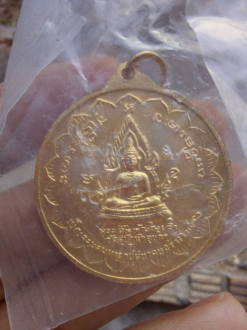 ด้านหลังเป็นพระรูปของ พระสัพพัญญูเจ้า พระประธานในพระอุโบสถวัดสุปัฏนารามวรวิหาร ซึ่งเป็นพระพุทธรูปที่ศักดิ์สิทธิ์ยิ่งองค์หนึ่งในจังหวัดอุบลฯ มีอักขระขอมติดองค์พระว่า “ อะ อุ มะ“ อะ คือ อะระหัง แปลว่า ผู้ไกลจากกิเลสซึ่งหมายถึงพระพุทธเจ้า อุ คือ อุตตมะธัมโม หมายถึง พระสัจธรรมอันเลิศเมื่อพระพุทธองค์ตรัสออกมาแล้วย่อมเป็นหนึ่งไม่มีสอง และ มะ คือ มหาสังโฆ แปลว่า พระสงฆ์หมู่ใหญ่