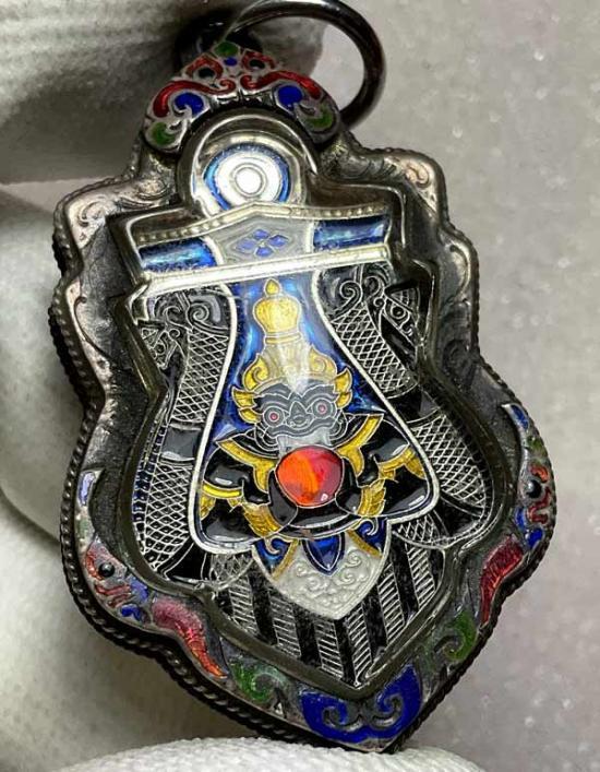 เหรียญพระราหูอมจันทร์ รุ่นราชาโชค ปี 66 ปลุกเสกวัดศรีษะทอง เนื้อเงินลงยาสีน้ำเงินพร้อมเลี่ยมเงิน