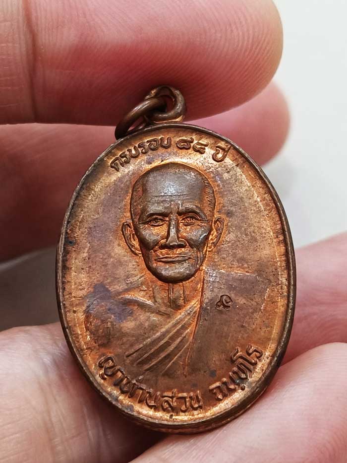 เหรียญเทพยินดี หลวงปู่ญาท่านสวน วัดนาอุดม จ.อุบลราชธานี บล็อกสายฝน ผิวไฟแดง ๆ ครับ