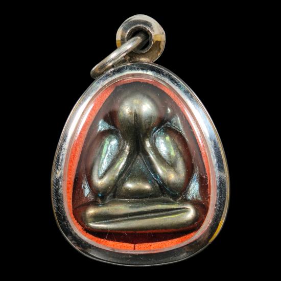 พระปิดตาเนื้อเมฆสิทธิ์ รุ่นเจริญดี พิมพ์ใหญ่ (หลังแบบ) หลวงปู่ดี วัดพระรูป จังหวัดสุพรรณบุรี ๒๕๓๔ พระสวยผิวปีกแมลงทับ พร้อมตลับสเตนเลส