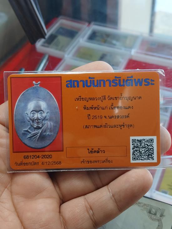 เหรียญหลวงปู่สี วัดเขาถ้ำบุญนาค พิมพ์หน้าแก่ เนื้อทองแดง ปี 2519 จ.นครสวรรค์ (สภาพแต่งผิวและหูชำรุด)