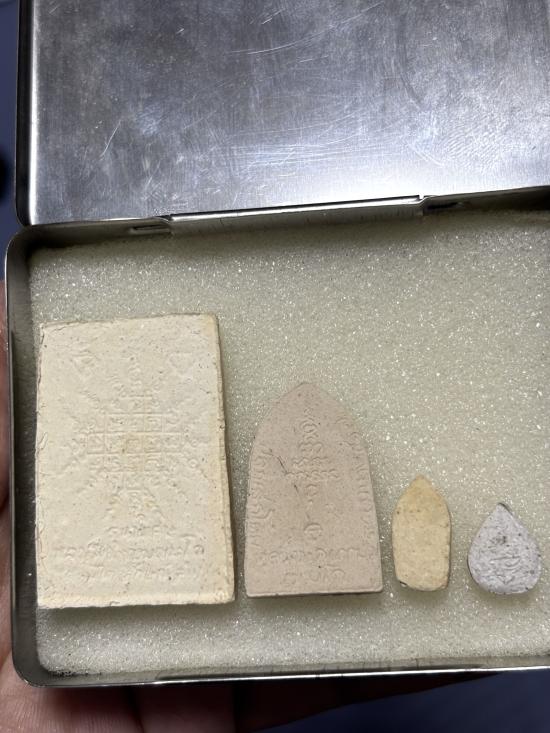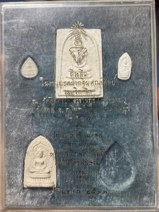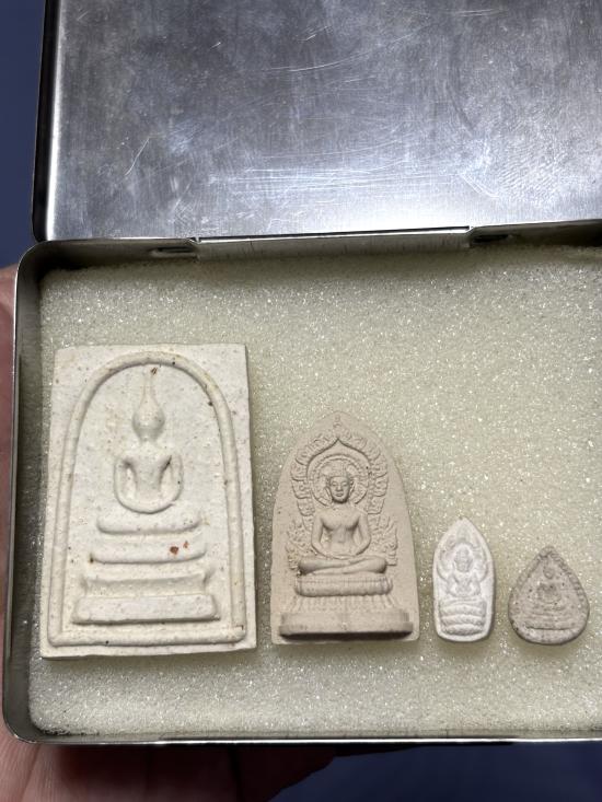 พระผงชุดนี้มีด้วยกันทั้งหมด 5 องค์ เรียกว่ารุ่นปัญจมหาชัยมงคล (พระหายไป 1 องค์ครับ) เป็นชุดที่แจกกรรมการเท่านั้นครับ ประกอบด้วย 1.สมเด็จเพชรรัตน์ 2.สมเด็จเม็ดแตง 3.นาคปรกมหาลาภ 4.พระผงมงคล๙ 5.พระผงมงคลชัย สร้างในปี2517 เนื่องในงานทอดผ้ากฐิน โดยคณะศิษย์ธัมมวิตกโก ณ วัดอินทรประชาราษฎร์(วังหวาย) จ.ปราจีนบุรี ปลุกเสกโดยหลวงพ่อเกษม เขมโก เมื่อวันที่ 9 เม.ย. 2517 (โดยเฉพาะสมเด็จเพชรรัตน์องค์เดียวเล่นหากันก็หลักพันแล้วครับ) พระสวยเดิมๆทุกองค์ มาพร้อมกล่องเดิมน่าสะสม (รับประกันตามกฎเว็บจี) |