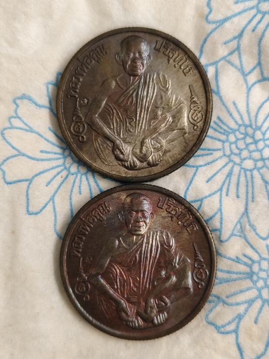 เหรียญขอบสตางต์ รุ่นมีกูไม่จน หลวงพ่อคูณ วัดบ้านไร่ หลังเจดีย์เกาะสีชัง ปี2539 เนื้อนวะ 2เหรียญ