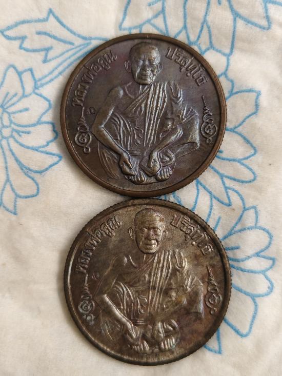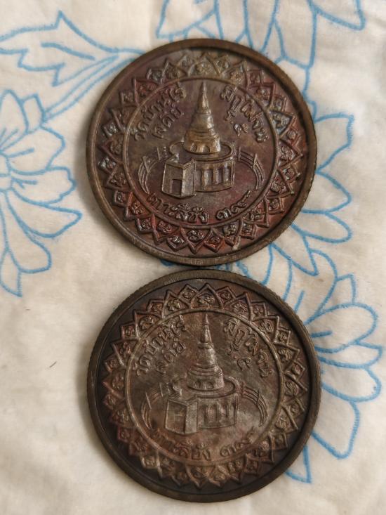 เหรียญขอบสตางต์ รุ่นมีกูไม่จน หลวงพ่อคูณ วัดบ้านไร่ หลังเจดีย์เกาะสีชัง ปี2539 เนื้อนวะ 2เหรียญ