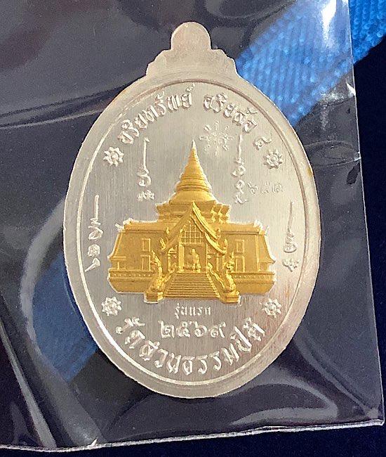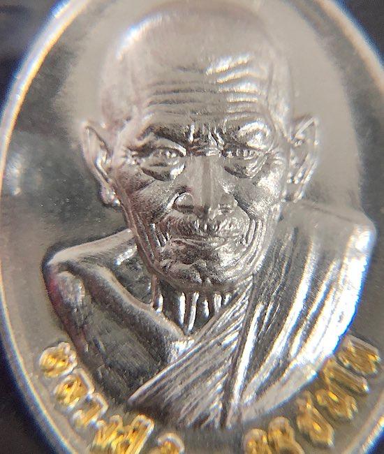 หลวงปู่มหาศิลาเม็ดแตง อริยทรัพย์ อริยสัจ 4เนื้อเงินผิวสวยกระจกหลังเจดีย์ทอง จมูก100 เลข 653 กล่องเดิม สภาพสวยๆ