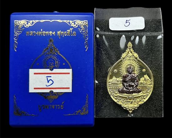 ชื่อพระเครื่อง เหรียญหลวงพ่อทอง วัดบ้านไร่ รุ่น บูรพาจารย์ "เนื้อทองระฆังหน้ากากชนวน" (กรรมการ) หมายเลขสวย "5"