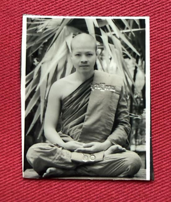 วัดใจไปเลย รูปถ่ายสีซีเปียพระอาจารย์เบ๊นซ์ วัดราชาธิวาส หลังแผ่นตะกั่วจารยันต์ ตอกเลข 20 |