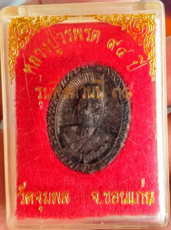 เหรียญหล่อรุ่นทิ้งทวน หลวงปู่วรพรต วัดจุมพล จ.ขอนแก่น ปี 2538 พร้อมกล่องเดิม |