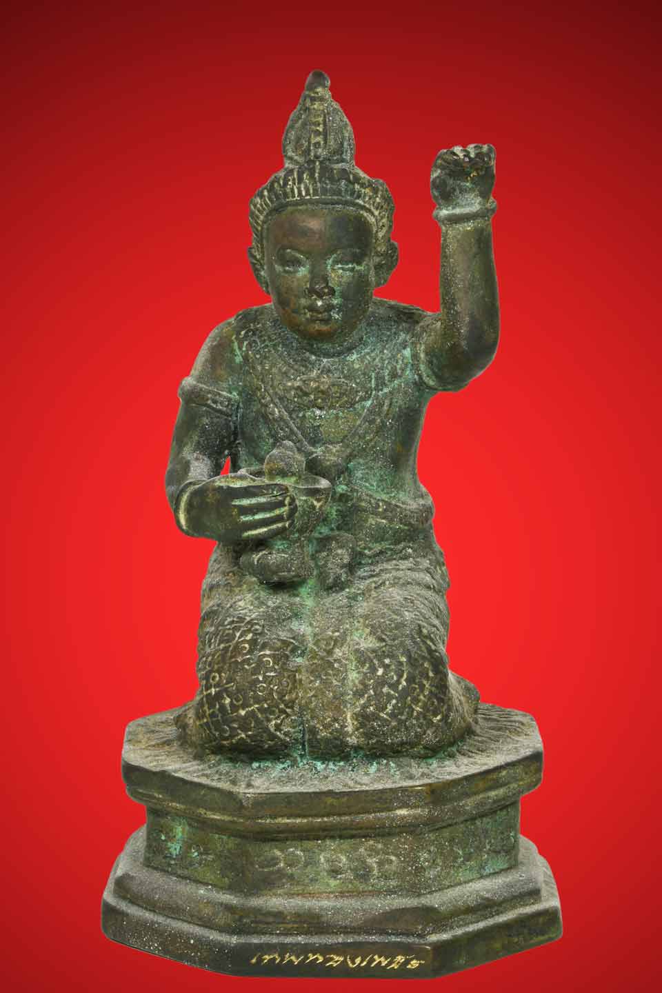เคาะเดียว กุมารเทพทองเพชร รุ่นนั่งรวยปี 2546 หลวงปู่หงษ์ พรหมปัญโญ เนื้อสำริดศิลา ฐานกว้าง3นิ้ว สูง 5.5นิ้ว (ใต้ฐานเขียนยันต์ นะ เม ติ )