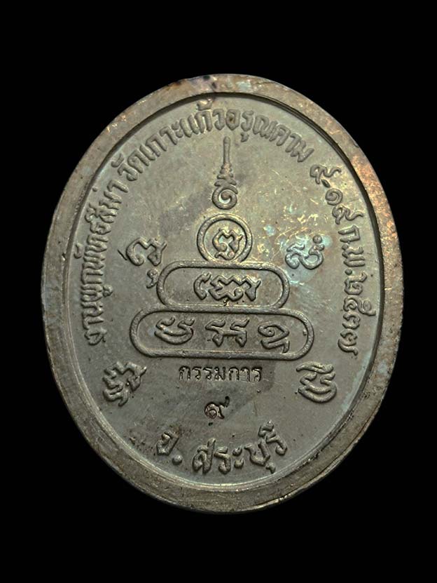 เหรียญหลวงพ่อคูณ ออกวัดเกาะแก้วอรุณคาม กรรมการ (เบอร์ 9) เนื้อเงิน ลงยาม่วง น้ำหนักเหรียญ 12.3 กรัม ปี พ.ศ.2537 หลวงพ่อคูณ วัดบ้านไร่ ปลุกเสก