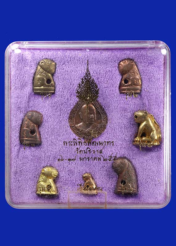 เสือย้อนยุค ที่ระลึกพระพิพิธพัฒนาทร ( หลวงพ่อสมชาย ) วัดปริวาส กรุงเทพฯ พ.ศ.2550 กล่องชุด 8 องค์ พร้อมกล่องเดิมๆ |