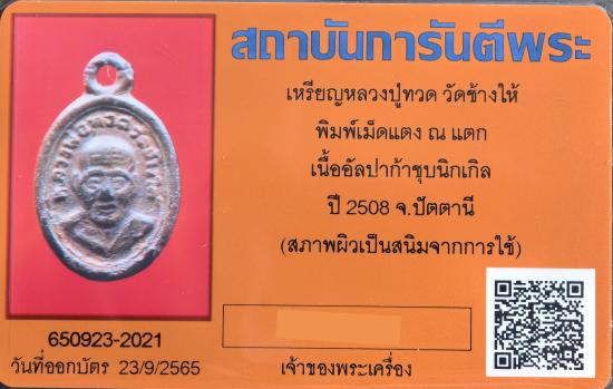 เหรียญพิมพ์เม็ดแตง หลวงปู่ทวด วัดช้างให้ ปี 2508 เนื้ออัลปาก้าชุบนิกเกิล บล็อก ณ แตก (นิยม) อาจารย์ทิมปลุกเสก. เหรียญนี้สภาพน่ารัก สภาพตามบัตรจากเว็บครับ. ของดีราคาย่อมเยาครับ. |