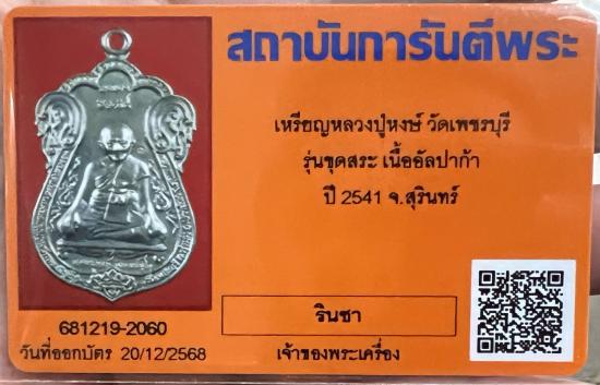 เหรียญขุดสระ หลวงปู่หงษ์ วัดเพชรบุรี เนื้ออัลปาก้า ปี2541 จ.สุรินทร์