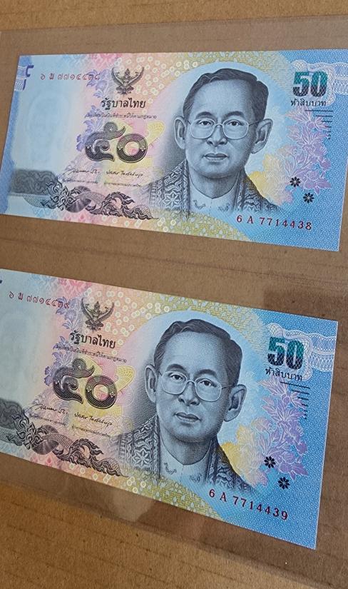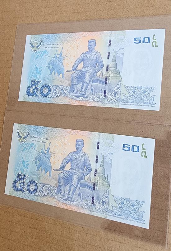 ให้จริง ธนบัตร ๕๐ บาท แบบ 16 (เลขเรียงติดกัน) จำนวน 2 ใบ สภาพใหม่ไม่ผ่านการใช้งานมาพร้อมพลาสติกใสครับ |