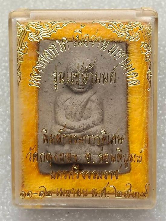 หลวงพ่อทวด เนื้อผงผสมน้ำนมควายผสมกับผงว่านมหามงคล ๑๐๘ ชนิด แช่น้ำมนต์ รุ่นชนะภัย วัดถลุงทอง จ.นครศรีธรรมราช ปี 2539 พิมพ์สี่เหลี่ยมกรรมการ |
