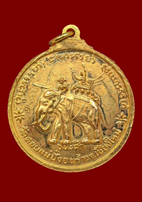 เหรียญชนะศึกเนื้อทองแดง กะไหล่ทอง ตอกโค๊ต หลวงปู่แหวน สุจิณฺโณ วัดดอยแม่ปั๋ง พ.ศ.2520