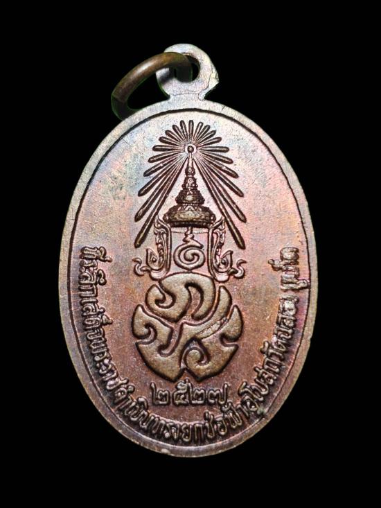เหรียญหลวงพ่อแช่ม หลังภปร. ที่ระลึกเสด็จพระราชดำเนินทรงยกช่อฟ้าอุโบสถ วัดฉลอง จ.ภูเก็ต ปี2527 เนื้อทองแดงผิวไฟอมรุ้ง สวยแชมป์ |